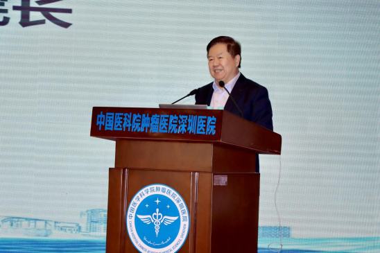肿瘤医院院长王绿化致欢迎辞。他表示,肿瘤医院作为南科大医学体系的重要组成部分,将充分发挥自身在专科诊疗与临床研究方面的优势,全力融入大学医学整体建设布局,积极促进医教研资源协同共享,共同为推动深圳医学高水平发展作出应有贡献。