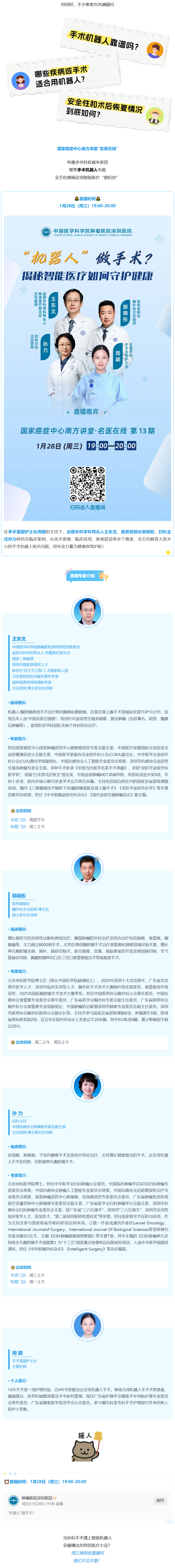 直播预告丨手术机器人靠谱吗?外科专家解密医疗“黑科技”