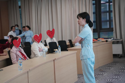 林淑婉护士带领大家进行《手法淋巴引流康复操》现场教学,通过示范分解动作、一对一指导矫正,让患者亲身体验到规范康复操对缓解淋巴水肿的积极作用,现场互动频繁,学习氛围浓厚。