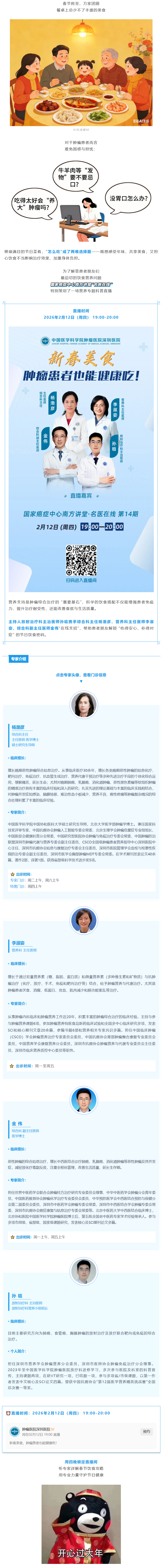 直播预告丨春节团圆宴,肿瘤患者怎么吃更健康?营养专家团来支招!