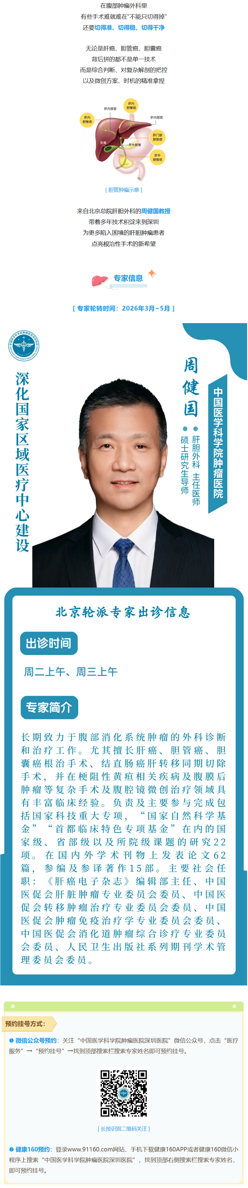 为期3个月~北京肝胆外科专家周健国教授在深出诊时间速览