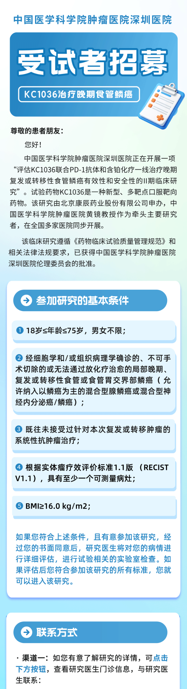 晚期食管鳞癌项目招募受试者啦→