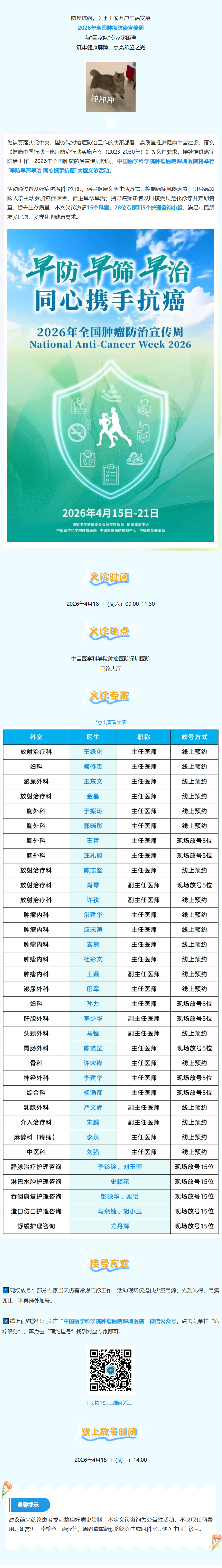 早防早筛早治,同心携手抗癌丨肿瘤防治“国家队”大型义诊锁定本周六