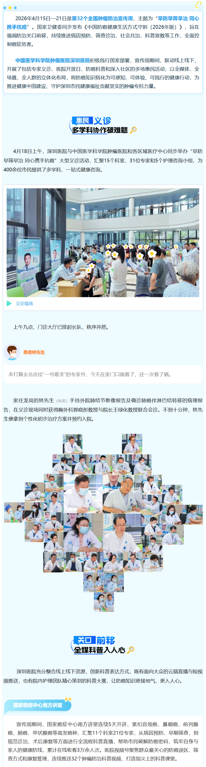 践行“早防早筛早治”丨深圳肿瘤防治“国家队”打出“立体化”组合拳