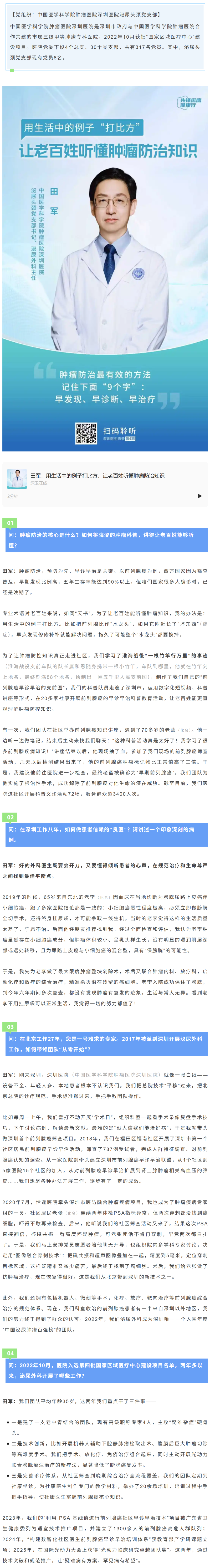 【深卫在线】田军:用生活中的例子打比方,让老百姓听懂肿瘤防治知识
